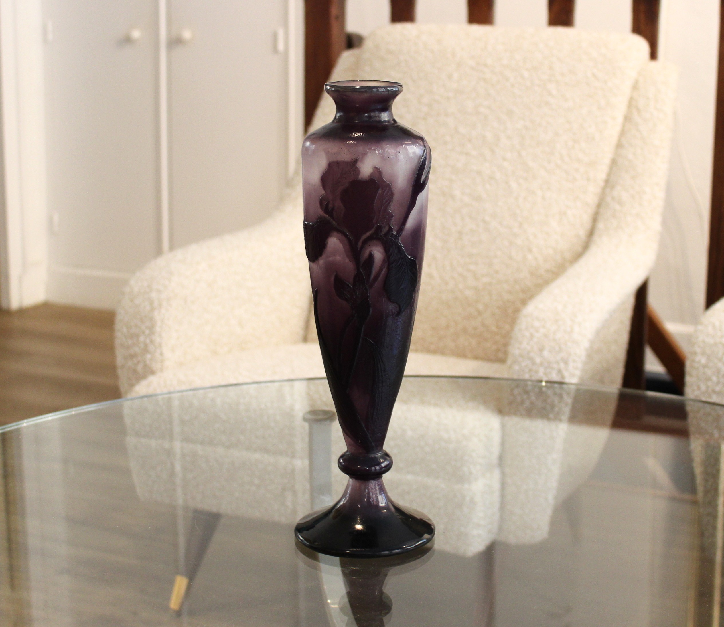 Rare vase de la Cristallerie de Emile Gallé à décor d’iris