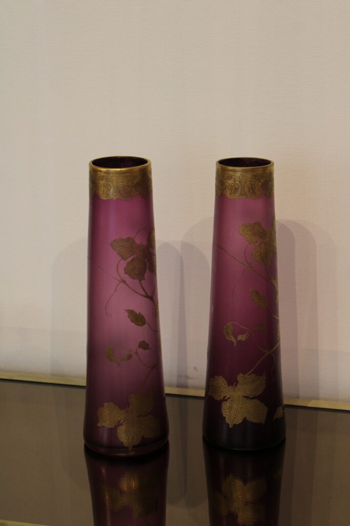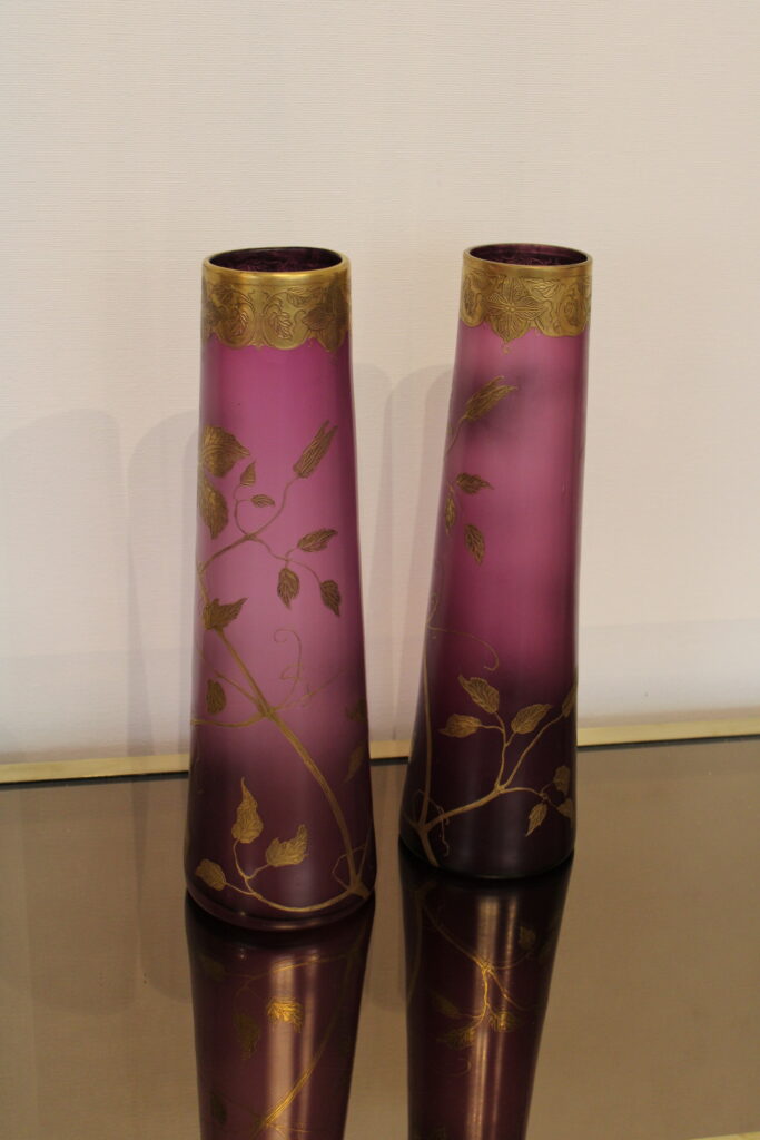 Glass vases by LegrasGolden flower decorEarly 20th century